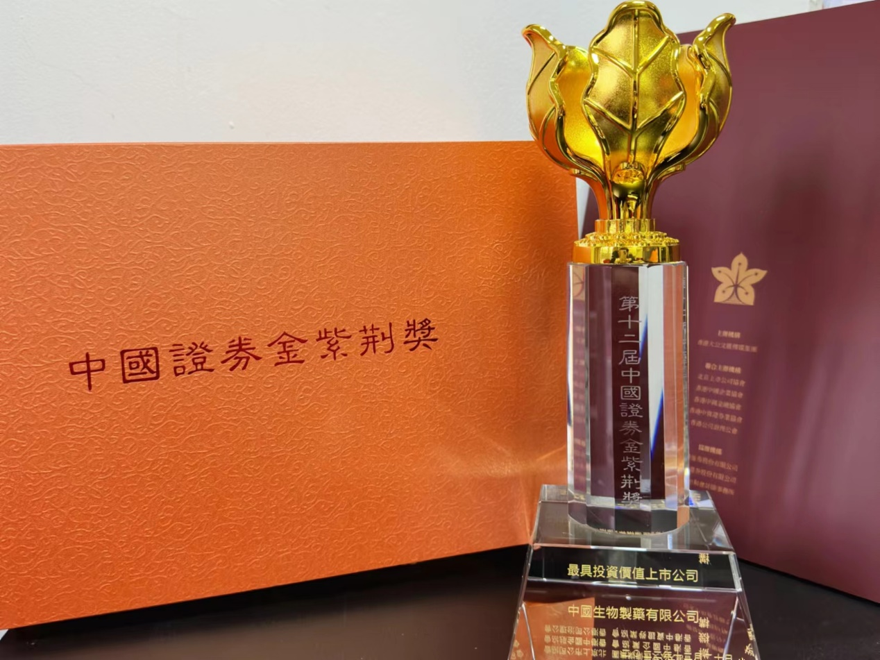 中国生物制药荣获第十二届中国证券金紫荆奖“最具投资价值上市公司”
