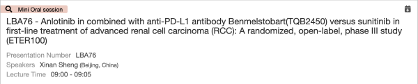 安罗替尼联合TQB2450对比舒尼替尼一线治疗晚期肾细胞癌(RCC)—一项随机对照、开放、III期研究(ETER100)