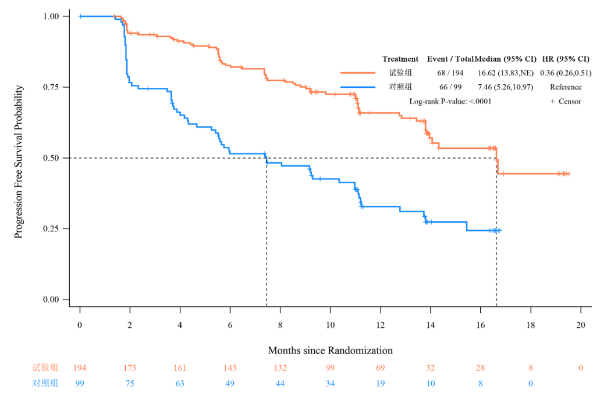 主要终点研究者评估的PFS生存曲线图
