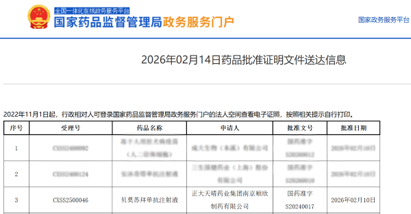 2月14日,中国生物制药(1177.HK)核心企业正大天晴1类新药贝莫苏拜单抗注射液(安得卫®)取得国家药品监督管理局(NMPA)批准,用于在接受铂类药物为基础的同步或序贯放化疗后未出现疾病进展的未携带已知表皮生长因子受体(EGFR)敏感突变或间变性淋巴瘤激酶(ALK)重排的不可切除Ⅲ期非小细胞肺癌(NSCLC)患者的治疗。这是贝莫苏拜单抗获批上市的第4个适应症,为中国人群中放化疗免疫协同治疗的长期价值给予了新的依据。